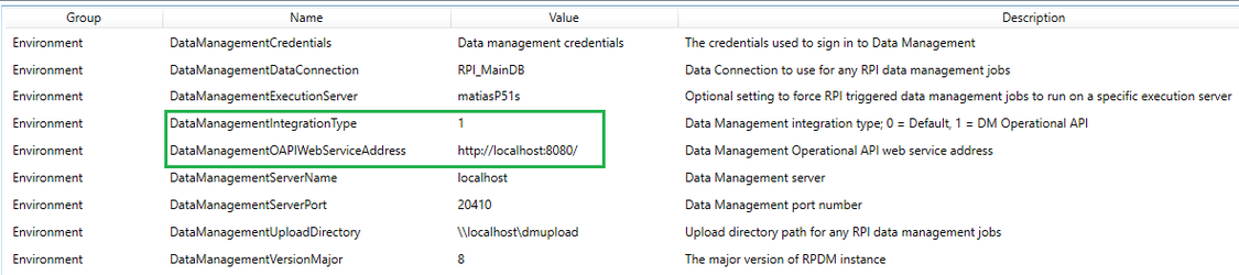 DataManagementOAPIWebServiceAddressto point to the base URL for the OAPI web serviceDataManagementServerName: set to the RPDM site server hostnameDataManagementServerName: set to the site server port (normally40420for RPDM v9)