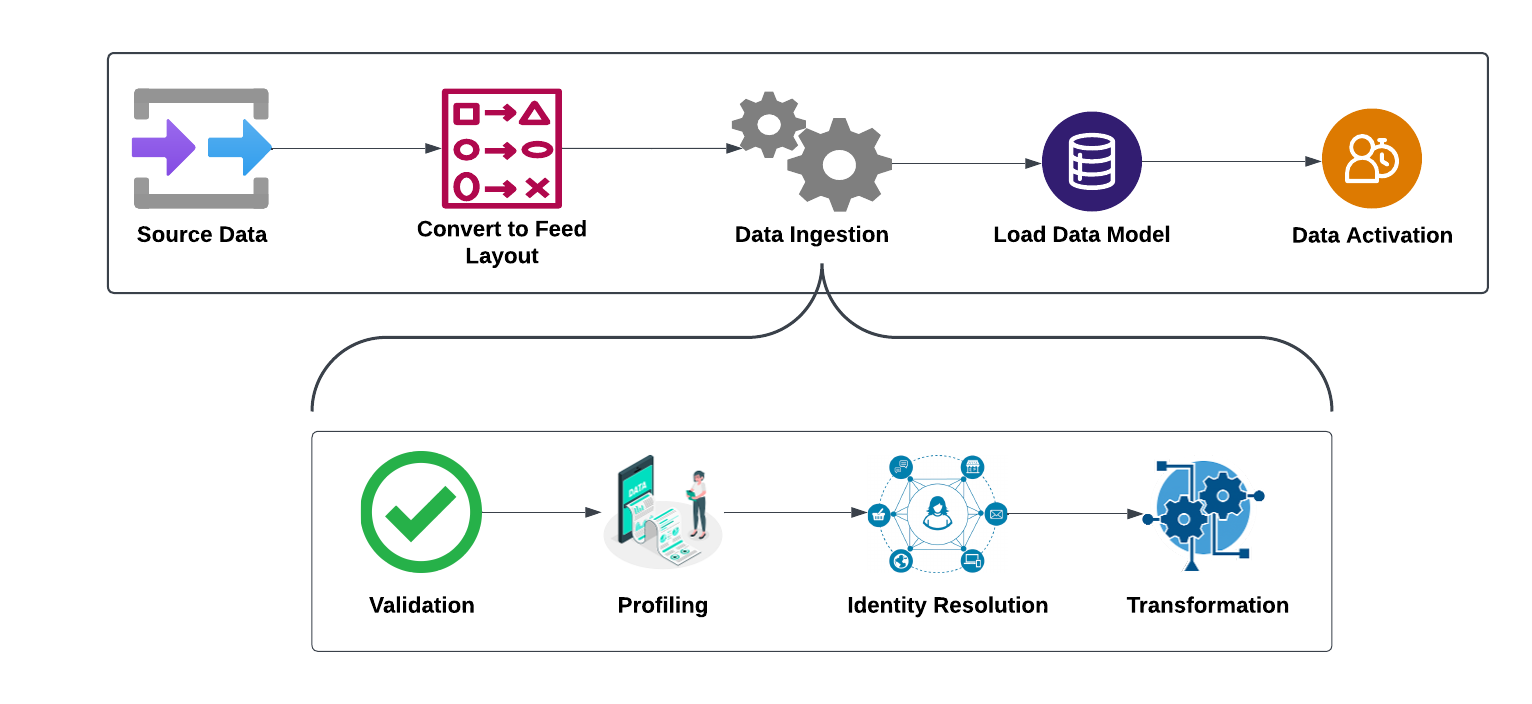 Feed layouts support ingestion by enabling you to map source data into a standardized input format that Redpoint CDP expects to initiate a standard processing flow.