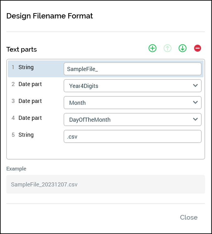 For Custom format, click the Click here to design the format link to open the Design Filename Format dialog and define the vendor-required naming convention.