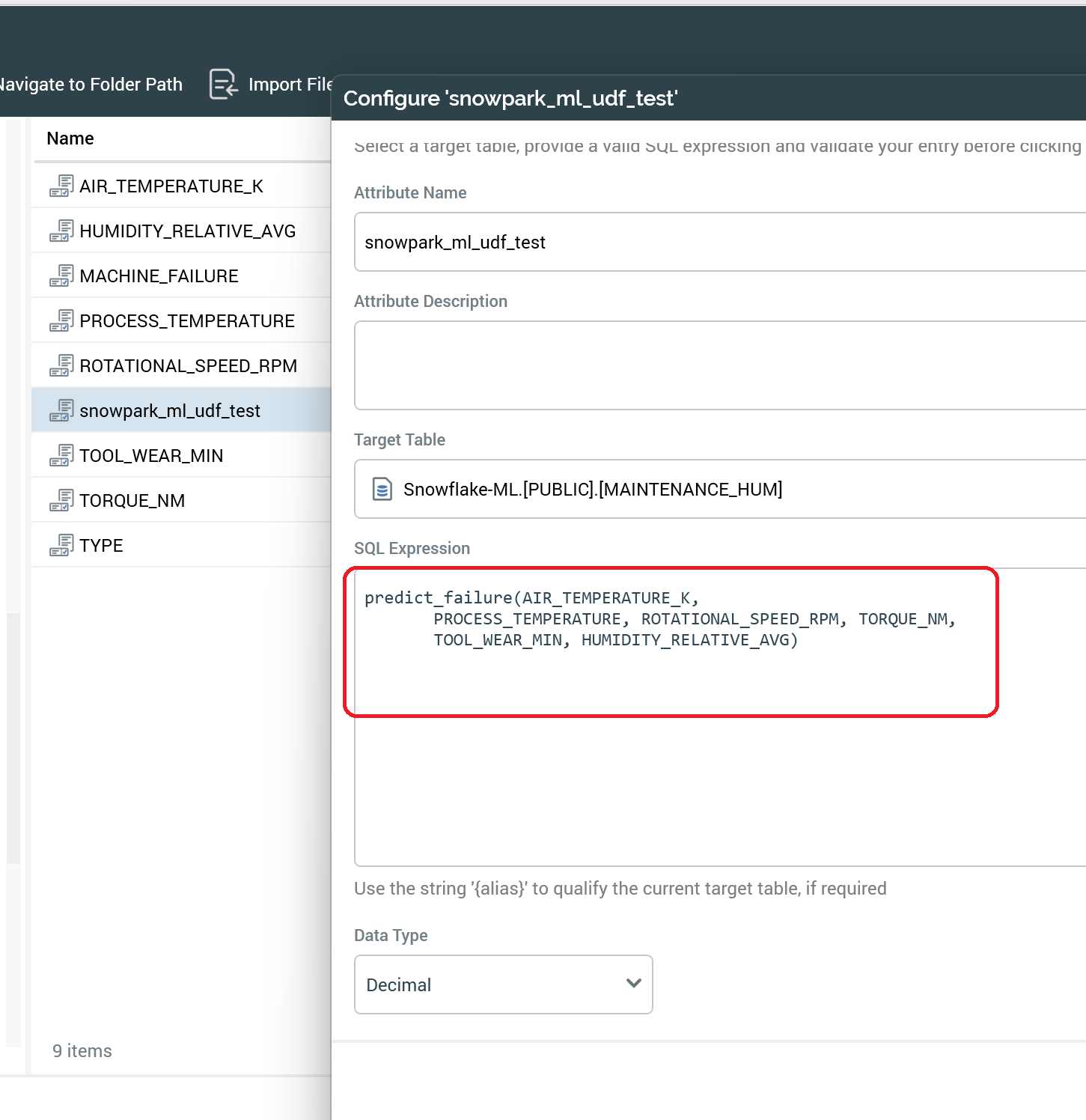 Configure the attribute: Configure the RPI attribute to invoke the UDF, passing the necessary input data and retrieving the scored result.
