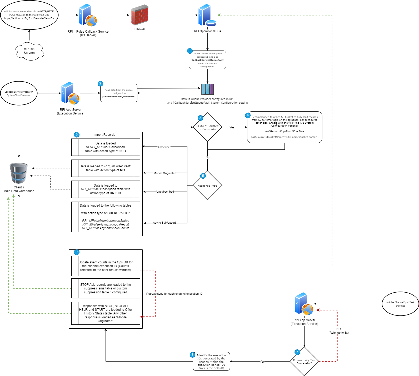 The mPulse connector in RPI v6.7 does not implement the above. Instead, mail merge files are created in a local folder and sent to mPulse. Each sent file is deleted afterwards.