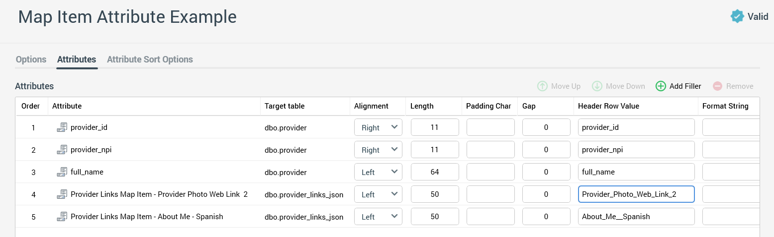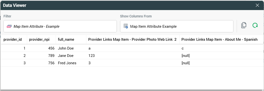provider_links_json) on the key, which isprovider_idin this case.Create map item attributes using this new table, configure the map item, and configure additional map item attributes (refer to the next subsections for detailed instructions).