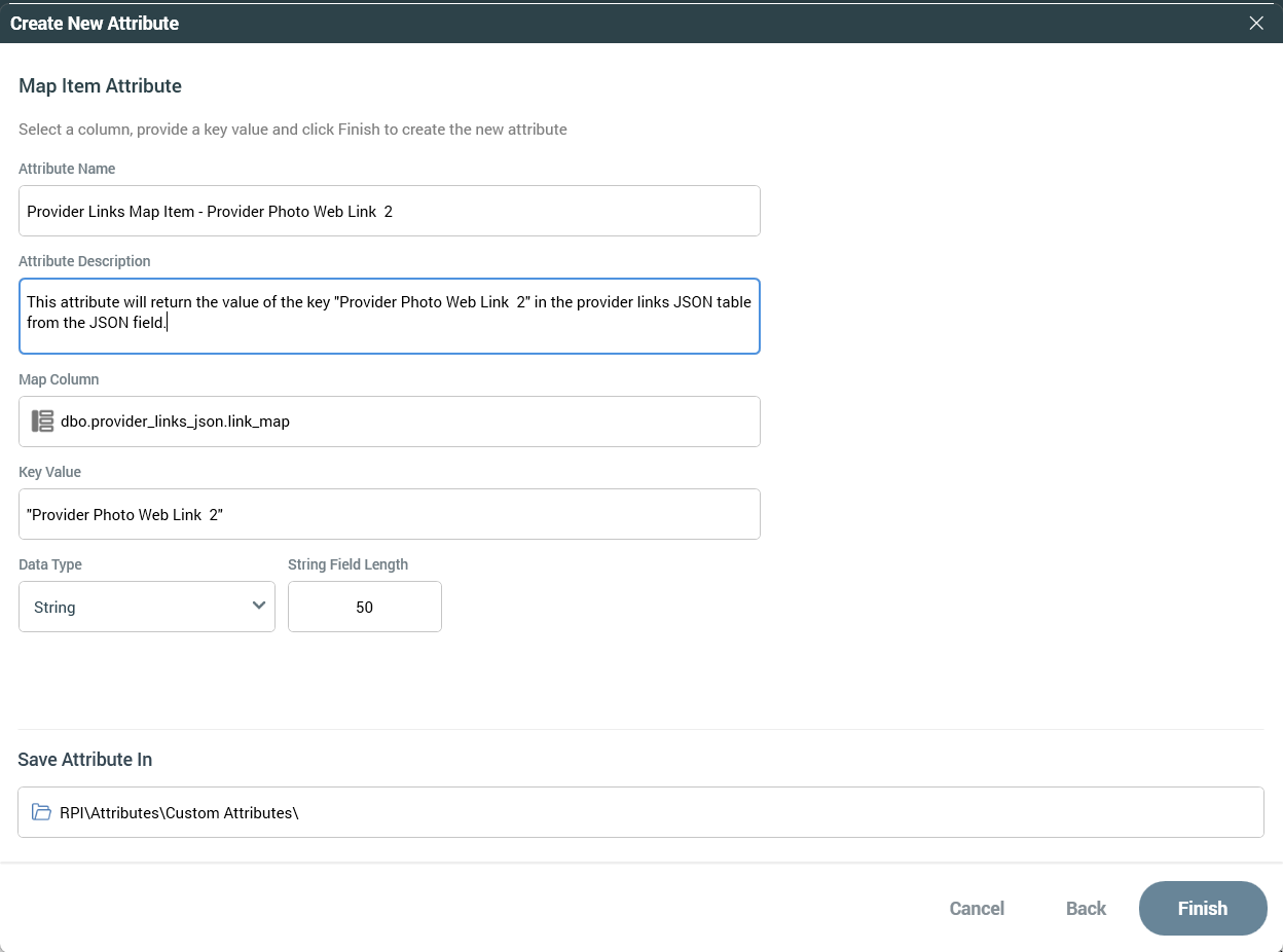 Now that we have a Map Item Attribute created based on the provider_links_json table, we can use that attribute to create additional ones based on the same table and field.