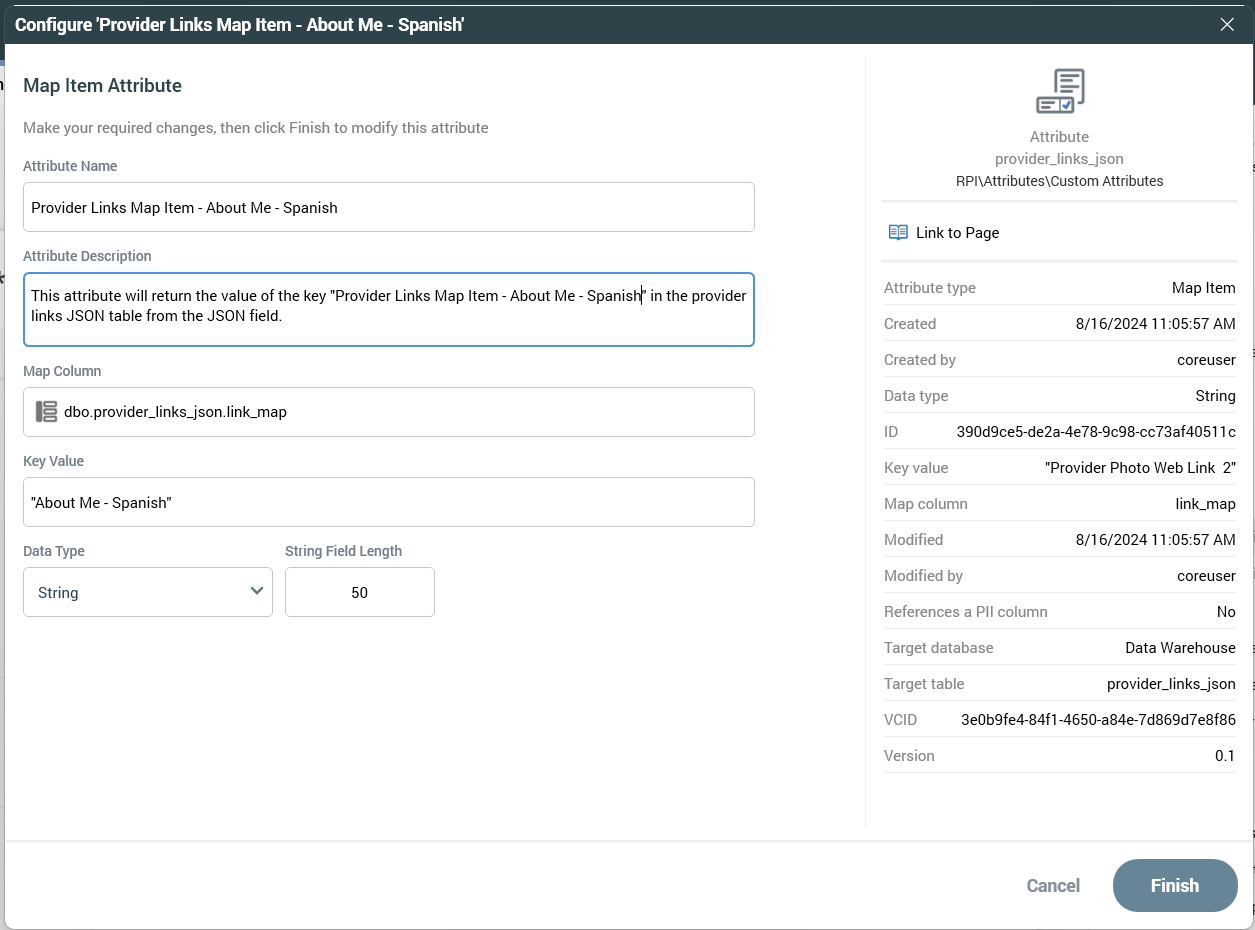 Provider Links Map Item - About Me -- Spanishin this example, and the location to save it.Then you can right-click the new attribute in the file system and select Configure attribute.