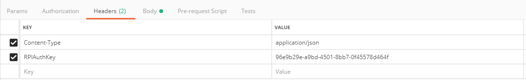 Content-Type:application/jsonRPIAuthKey: this is the value shown in the above JSON information asTriggerKey