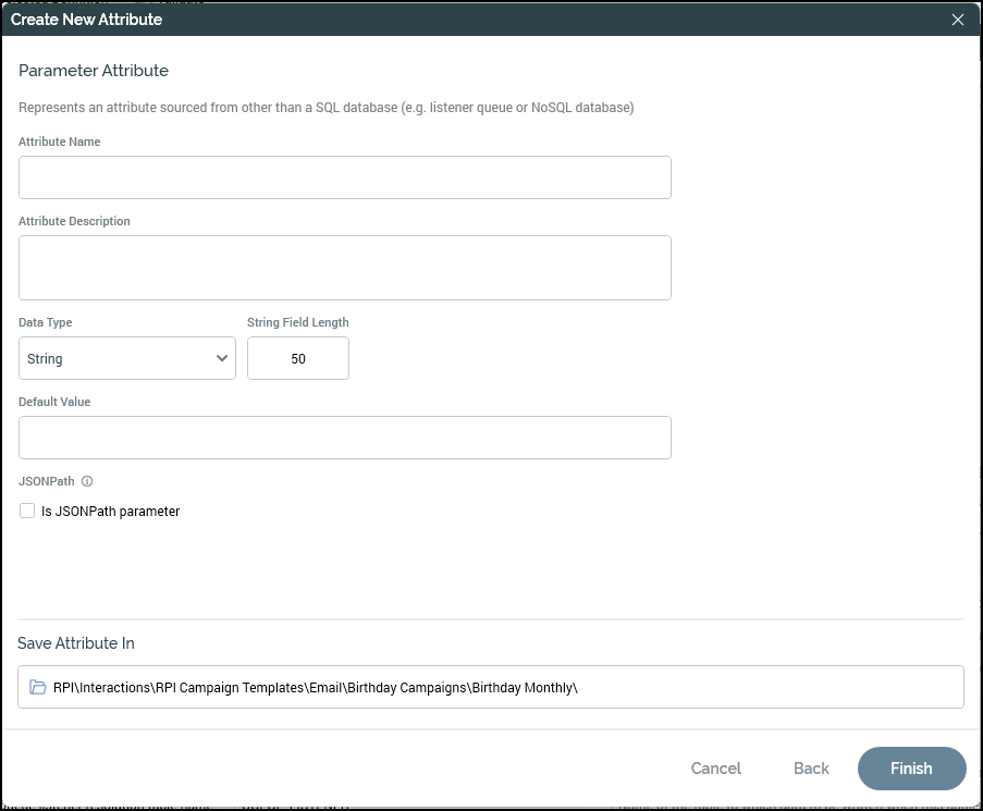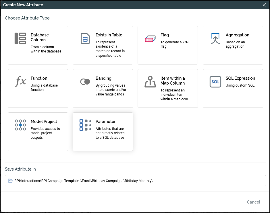 Within the next screen, you need to click Parameter and then provide the following information about the attribute: