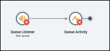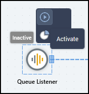 After you name the new interaction, next you’ll drag in “Queue Listener” from the palette. This also brings the “Queue Activity” with it: