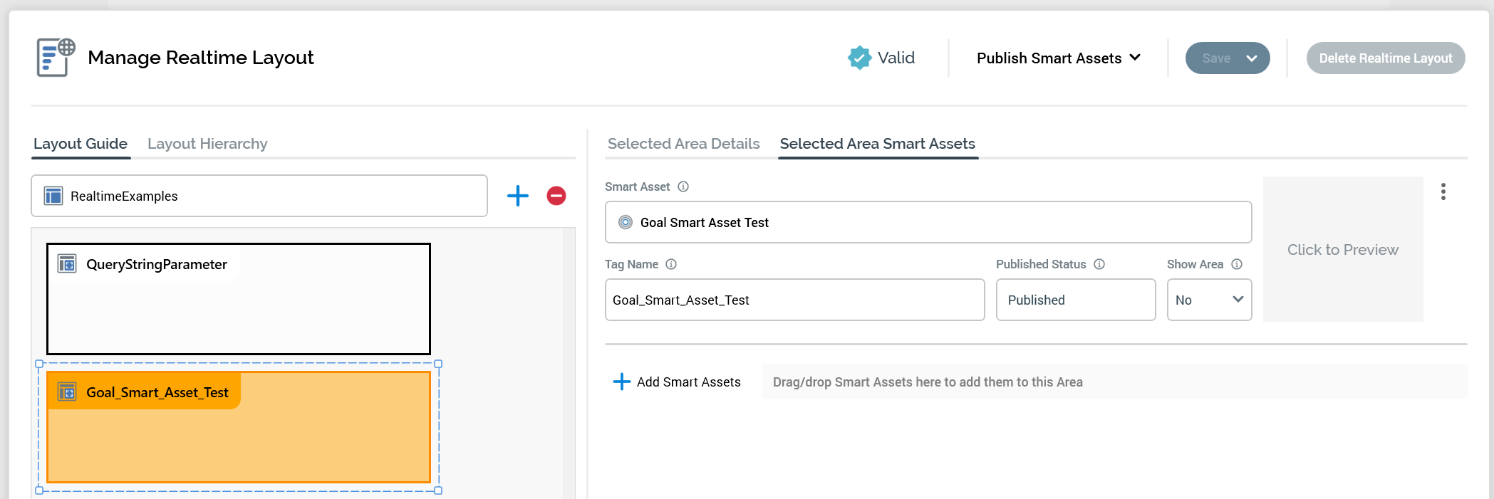 Below is the configuration of the Realtime layout that will replace that DIV with the response from the Realtime decision. The key piece is that the DIV ID matches the Tag Name in the Smart Asset.