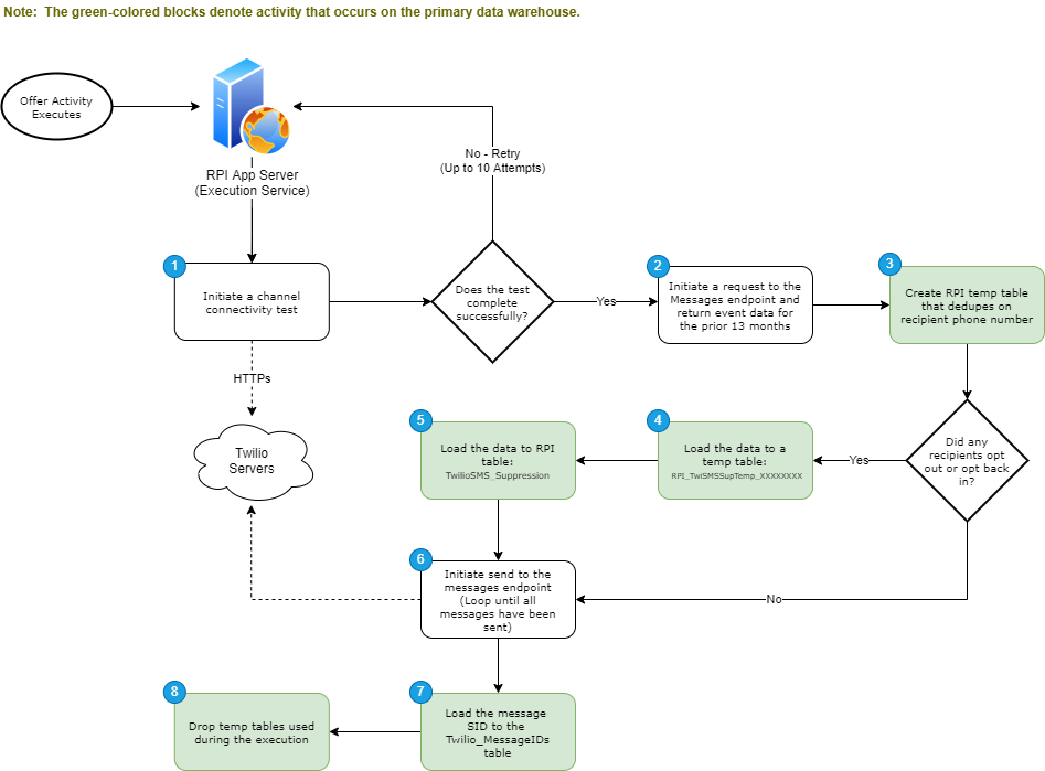The Twilio SMS connector performs the following steps when it is used as part of an outbound Offer Activity.