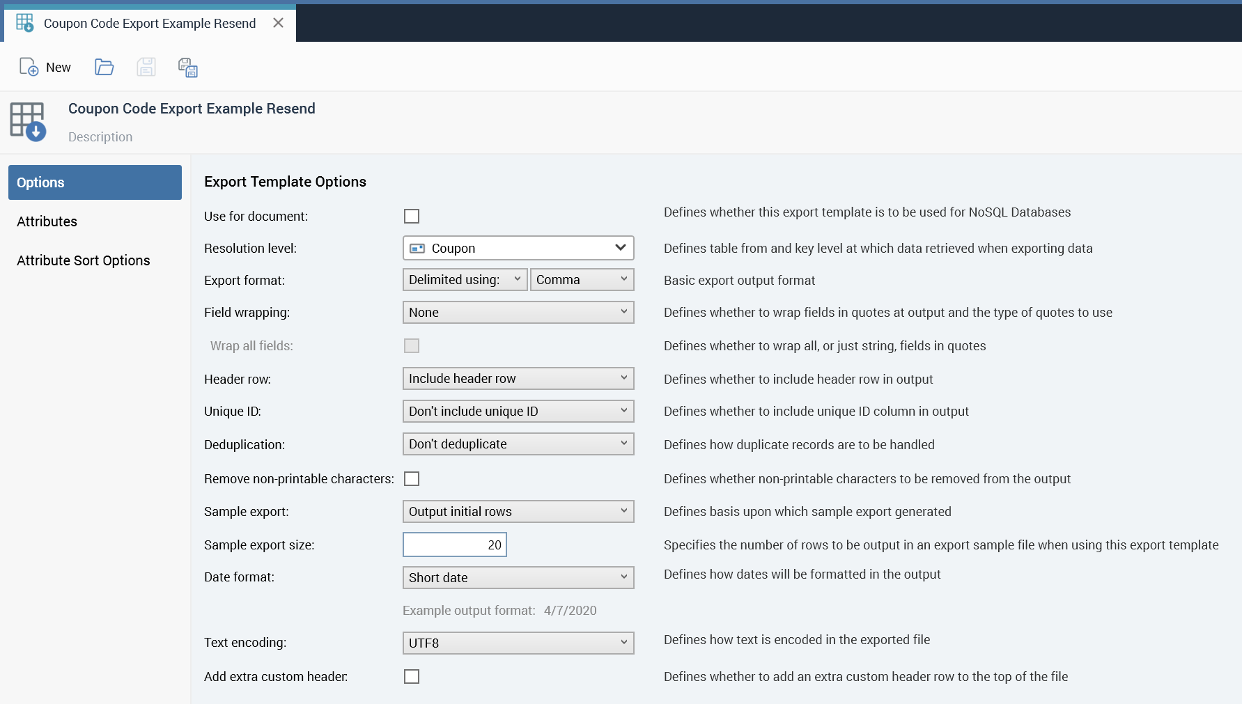 Create an export template that uses the fields from the coupon assignment resend view, and the options should be using the coupon resolution.