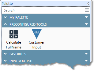 The group My Palette is a convenient way to organize the tools you use the most. You can drag items from any other palette section, or drag macros or projects from the repository tree. To remove an item from My Palette, press the Shift key, select the item, and drag it off the palette.