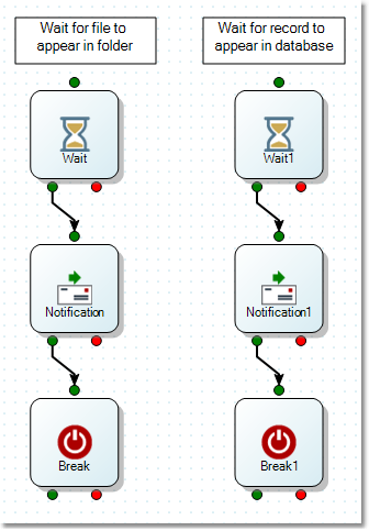 The Wait step pauses processing until a specified event or condition occurs. This may be the existence of a file or table, or a defined time interval or date/time.