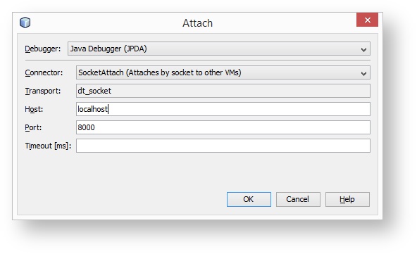 Always track this port number; it is the one you will use when attaching the Java IDE debugger. If for some reason you cannot find this message, try the following command.