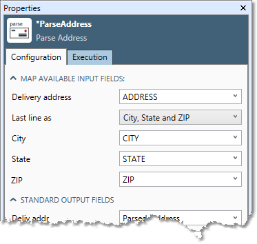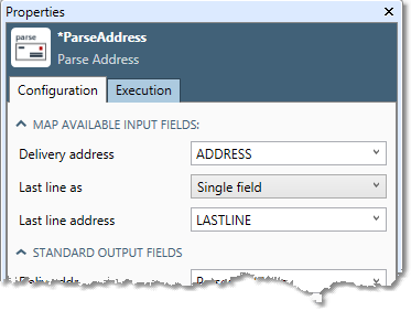 The Parse Address tool has one set of configuration parameters in addition to the standard execution options: