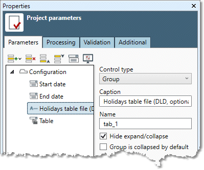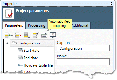 When configuring project parameters, you can view a project's user-configurable properties in the Configuration Locator, accessed from the Processing tab.