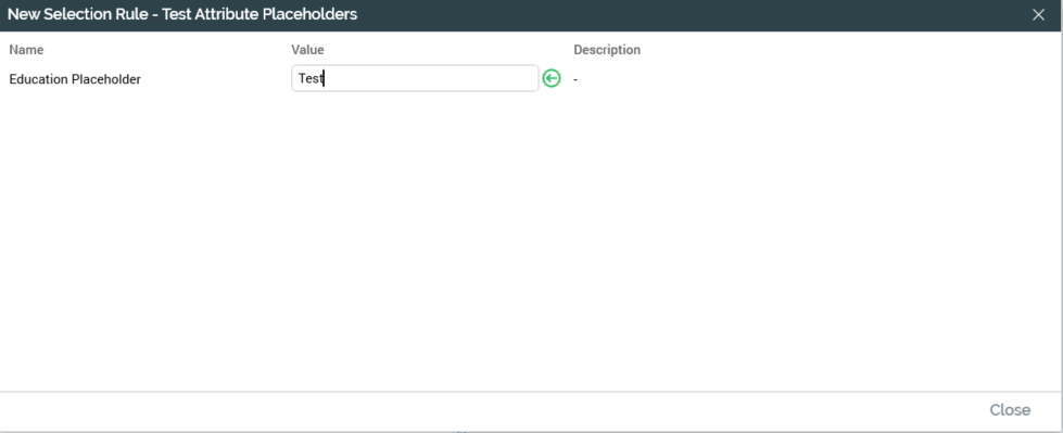 Use this dialog to provide or override placeholder attribute values at standard and basic selection rules, audiences and interactions.