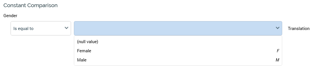 When you select the Value button, its label is replaced with Translation, and the existing constant field is replaced with a drop-down list.