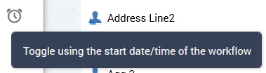 In addition, an extra button (Toggle using the start date/time of the workflow) is displayed: