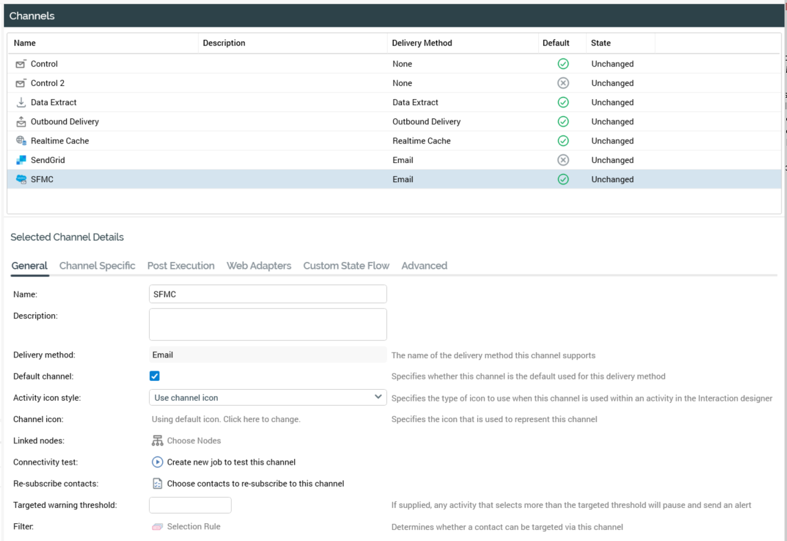 Channels are used when executing offers within interactions. A channel defines the media by which an offer is to be executed – by email and SMS, for example.