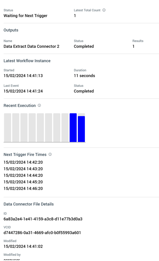 Run Now: this button is displayed when a data connector's Status is Waiting for Trigger. Selecting it immediately executes the data connector's next scheduled execution.