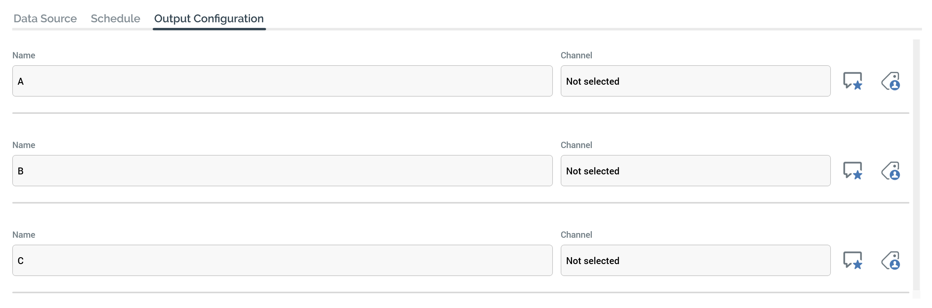 It is mandatory for at least one of the data connector’s outputs to be configured with a channel.