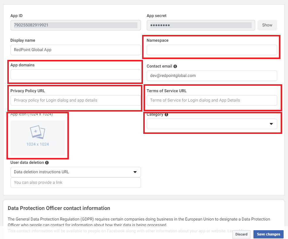 To get the App ID and App secret, go to your app’s page. From the menu on the left, go to App settings > Basic.