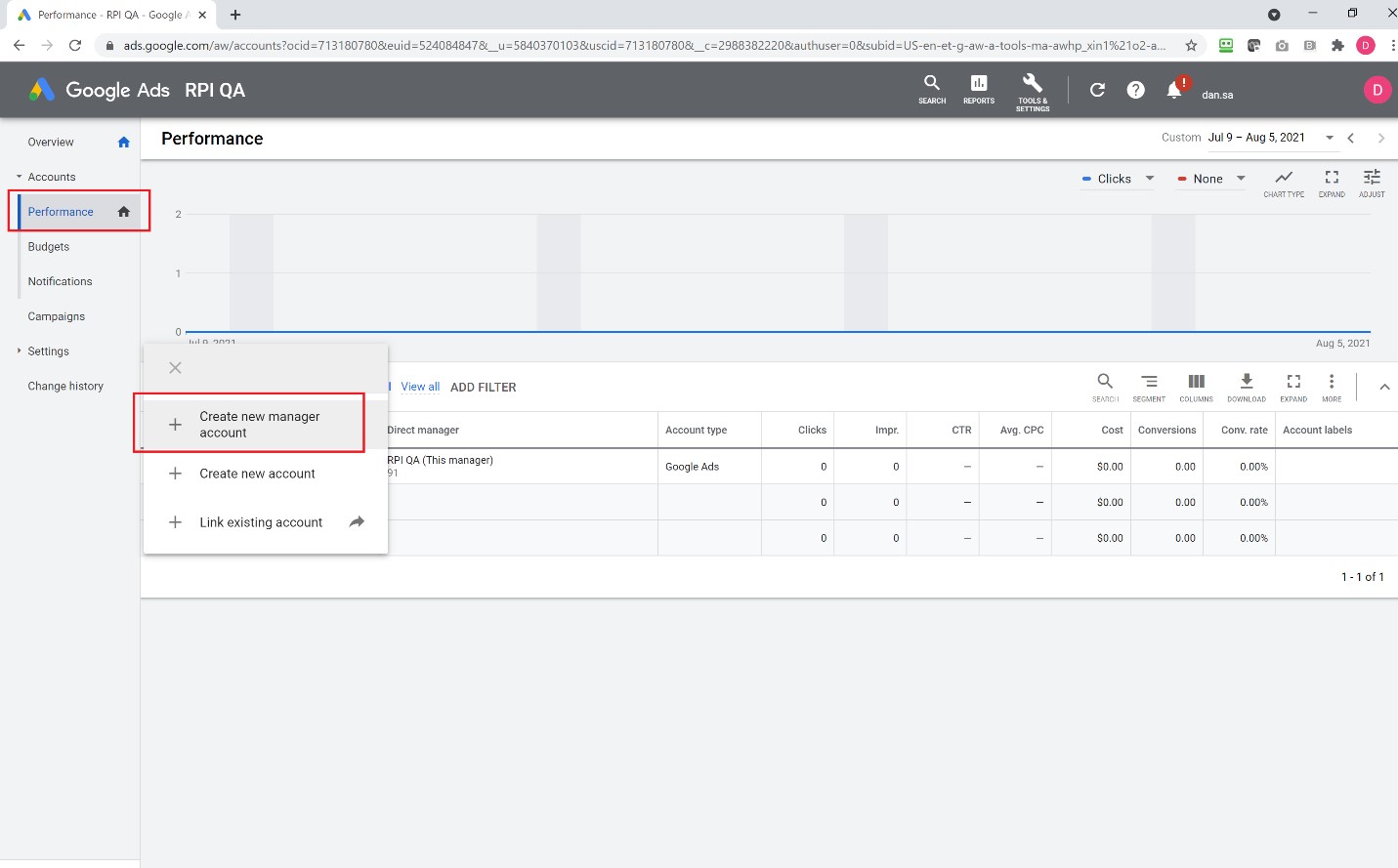 Create Google Ads account