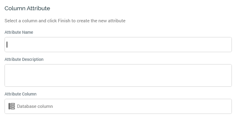 When you select a column for the first time the attribute’s name is set to that of the column (if not already explicitly provided). If you select a column with a CamelCase name, its default name is separated into a series of words in accordance with the case used – i.e. “Camel Case”.
