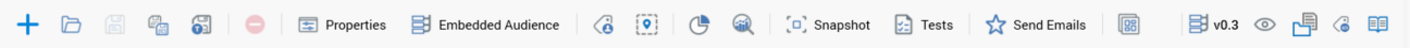 RPI’s designer interfaces feature a toolbar that provides access to functionality relevant to the current context. All toolbars are different; this example comes from the Audience Designer: