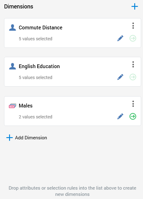 Note that you can also add dimensions by dragging one or more attributes or selection rules from the toolbox and dropping them directly onto the Dimensions list.