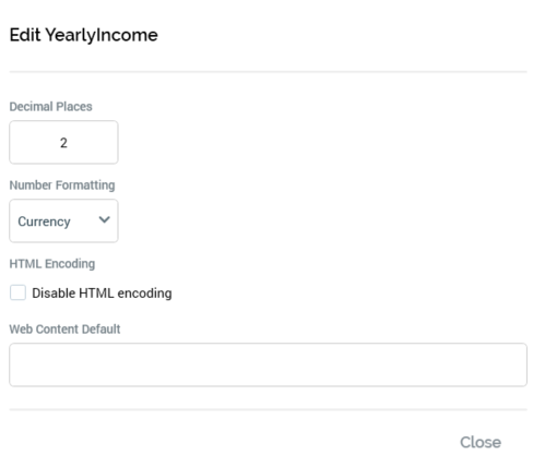 Decimal places: an integer property that defaults to 2.