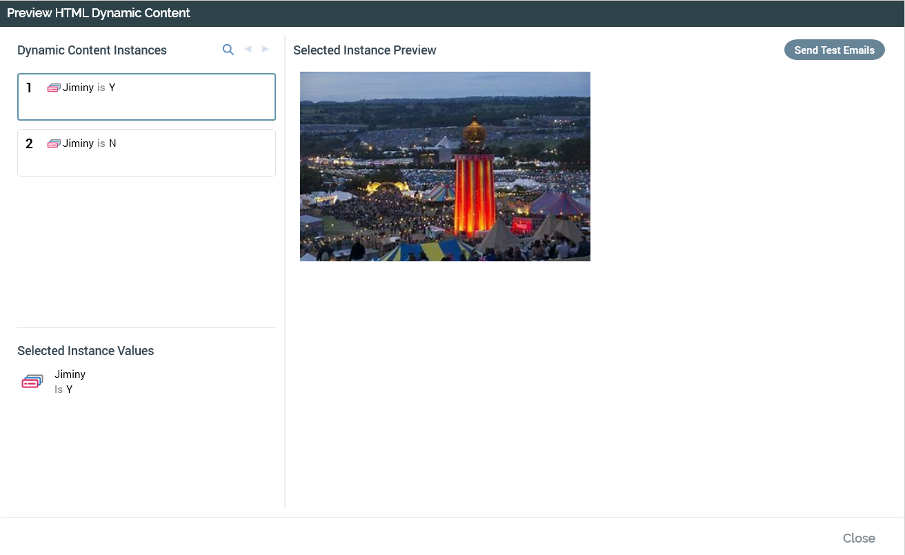 This section displays the rendered selected dynamic content instance.