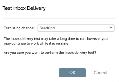 Invocation of Test Inbox delivery displays a dialog: