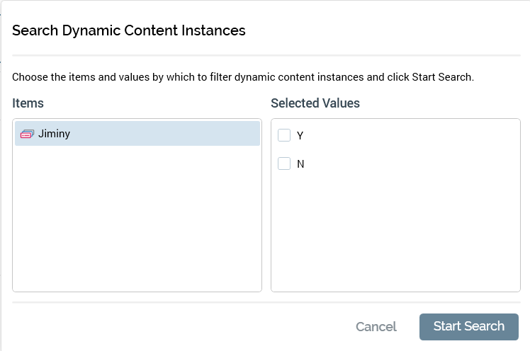 Search: invocation displays the Search Dynamic Content Instances dialog.
