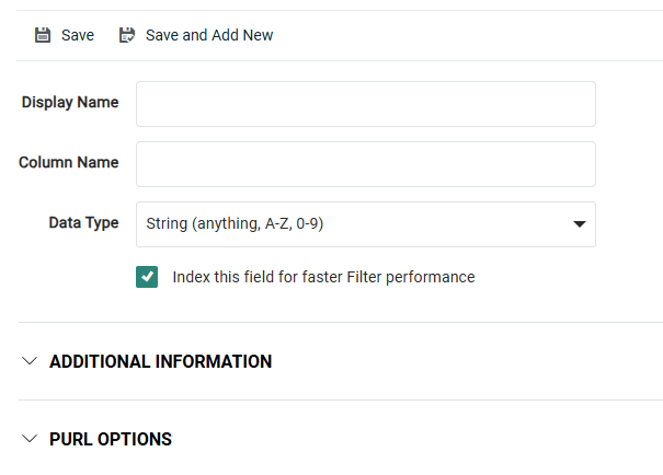 Enter the Display Name, Column Name, and set the desired Data Type.