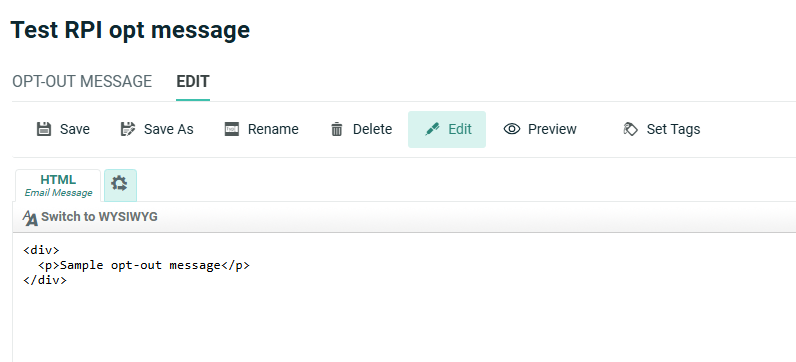 Provide the Opt-Out Message content per your design in the Edit tab section.