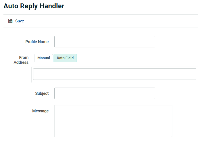 For the To Address option, you can either configure a valid static email address from the Manual tab, or select a field from the Data Field tab using the drop-down menu populated with every field in your system that is formatted with a Data Type of Email.