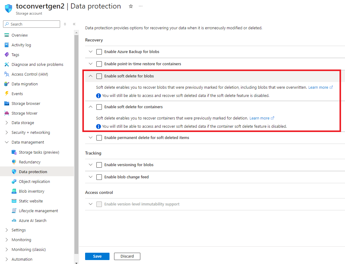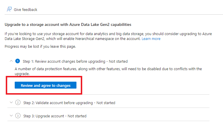 Log in to the Azure Portal and go to the storage account you want to convert.