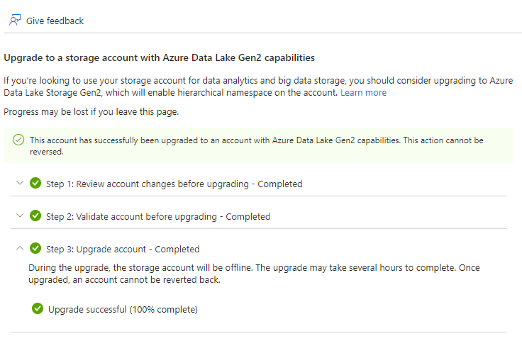 Convert an Azure Storage account to Gen2 Data Lake Storage