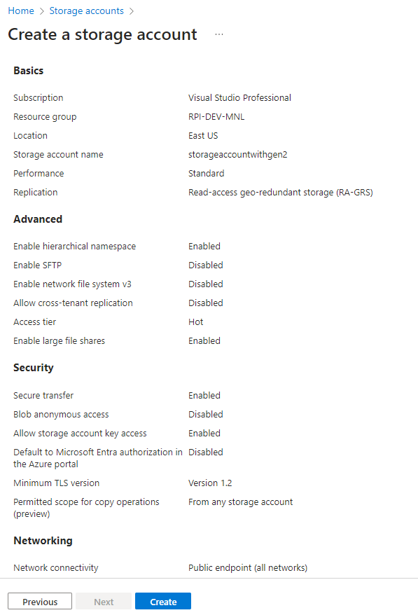 Creating a hierarchical namespace-enabled Azure Storage account