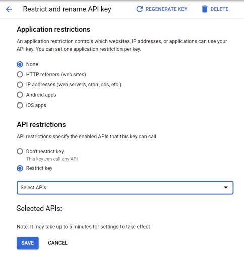 Set the API key’s Application restrictions and API restrictions.