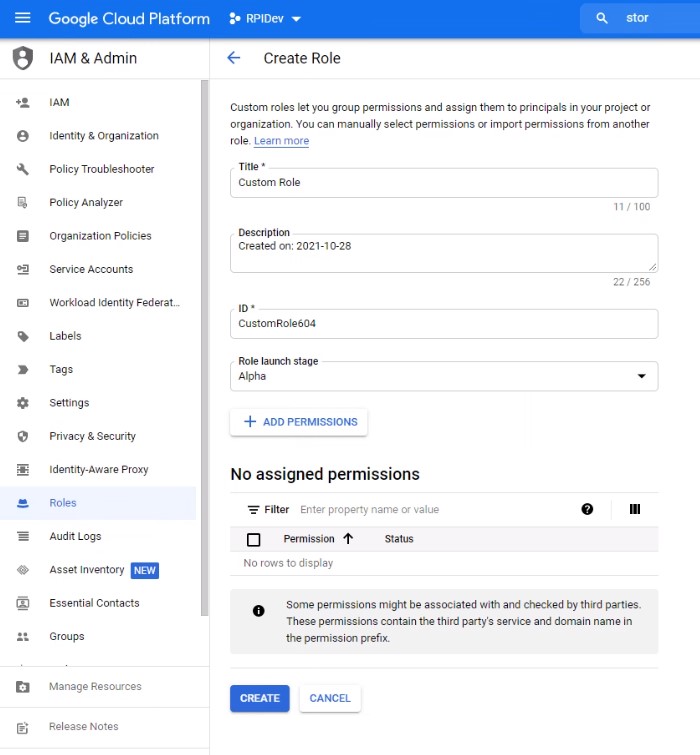 From the main menu, navigate to IAM & Admin>Roles.