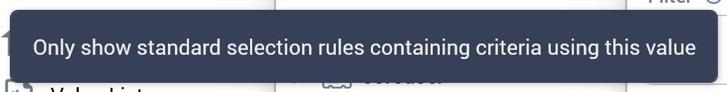 Filter: this option is only displayed when a database column's details are being viewed in the File Information Dialog. An information icon is shown, hovering over which displays the following tooltip: