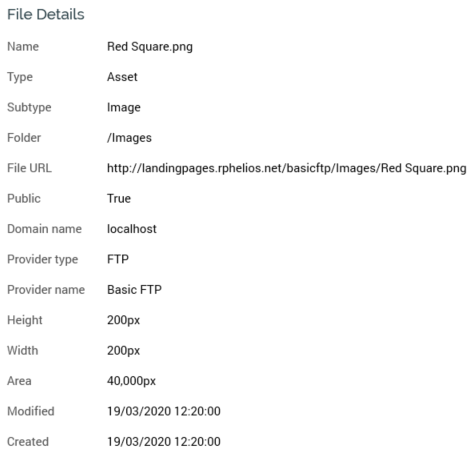 If displayed for a file accessed via an external content provider, the following information is shown: