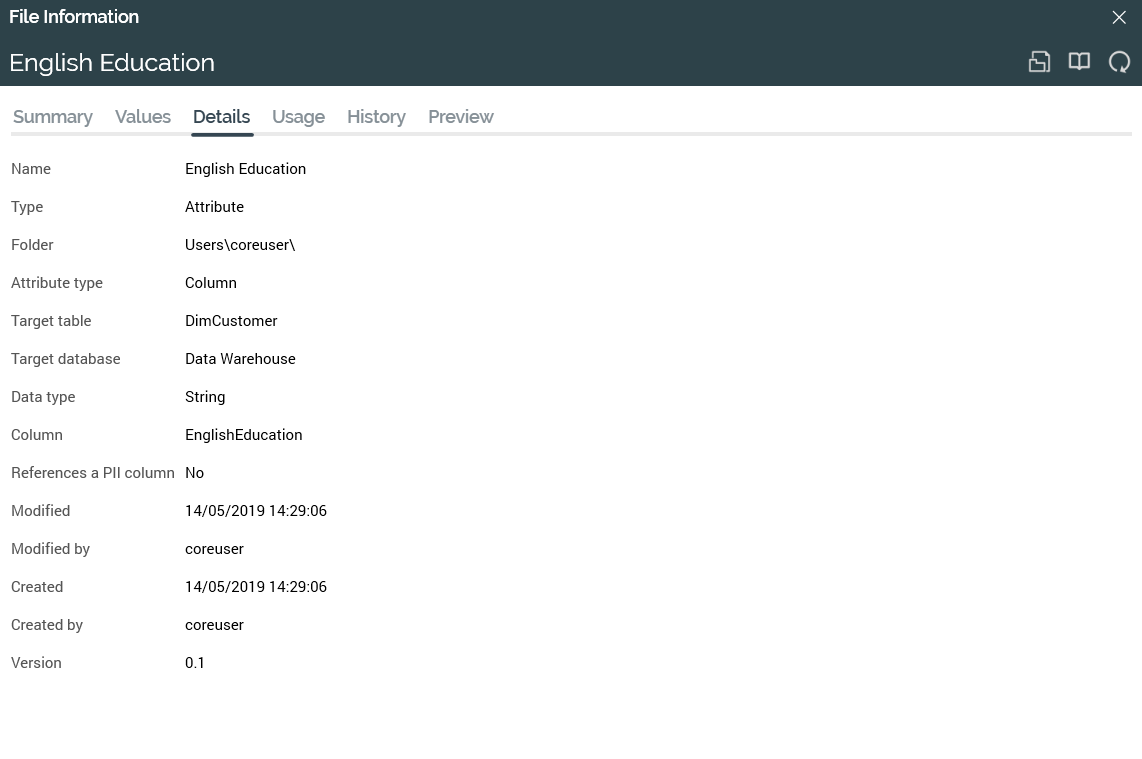 This tab is only displayed for AWS S3 and Azure Storage files. It allows you to view or manage metadata in respect of the external file. It contains a toolbar and External Metadata list.