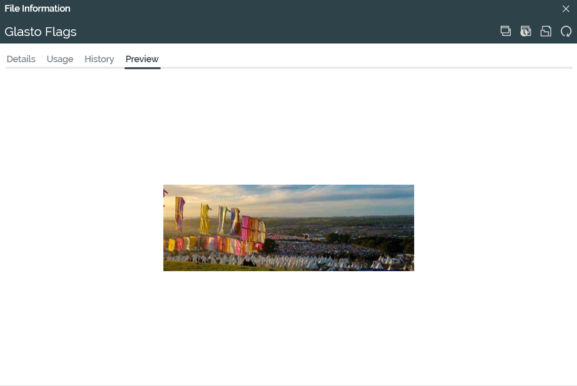 The preview represents the state of the file as per the version currently displayed in the File Information Dialog.