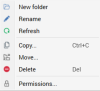 New folder: creates a new folder within the current folder. By default, the folder is called “New folder” (if a folder with that name already exists within the parent folder, the new folder is called “New folder 2” (the number can be incremented if required)).