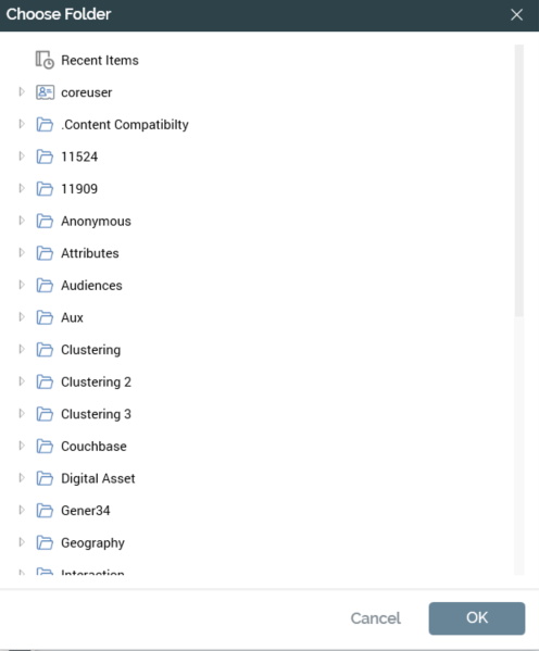 This dialog lists the folders in the RPI file system to which you have access (if required, you can also choose the Recent Items folder).