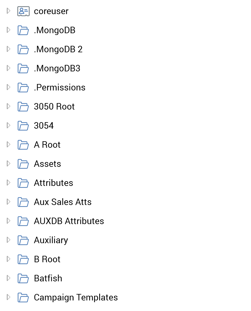You can roll up and expand folders as required. When a folder contains files, they are similarly displayed within the treeview.