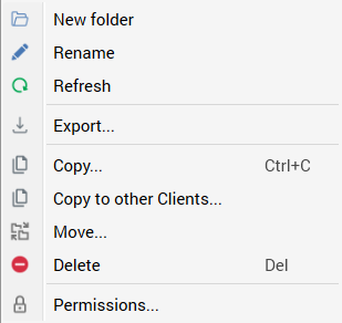 Right-clicking elsewhere within the folders treeview displays a context menu that gives access to the following menu options, which apply to the file system’s root folder: